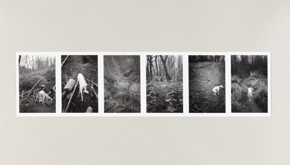 While walking my dog in a small forest, carrying a cheap 35mm point and shoot camera with me, both of Divola’s projects automatically came to mind. From the moment Syla was set free, our walk turned into an energetic game hide and seek, where she would run back and forth on the path, or suddenly disappear between the trees, completely indifferent to my attempts to photograph her.